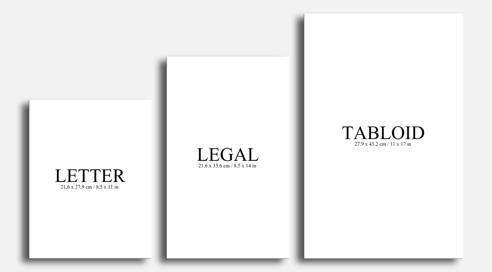 - Tabloid 27.9 x 43.2 cm / 11.0 x 17.0 in / 279 x 432 mm